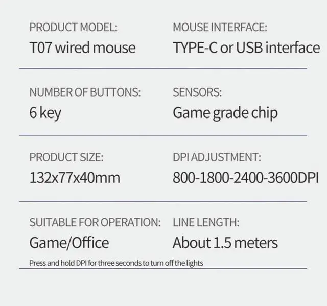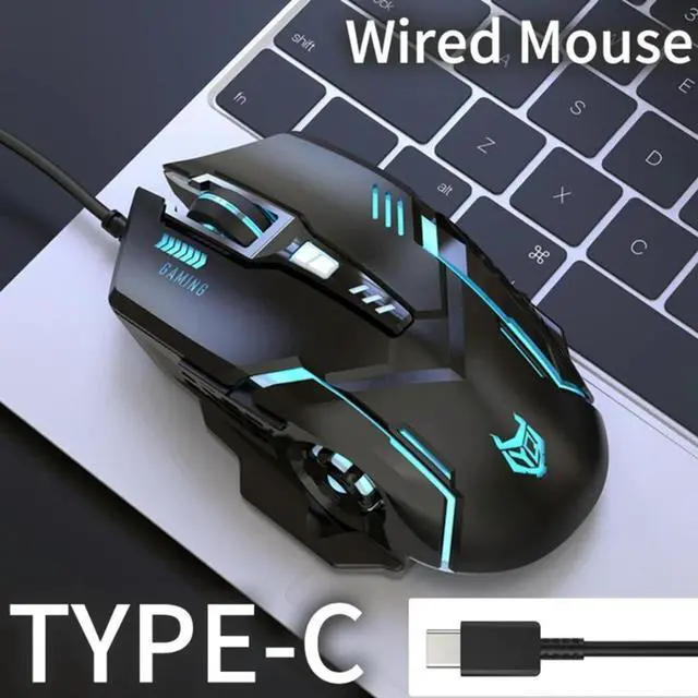 • TypeC Corded Mouse USB C Gaming Mouse with Adjustable 3600DPI Backlit Ergonomic for PC USB Type C Devices