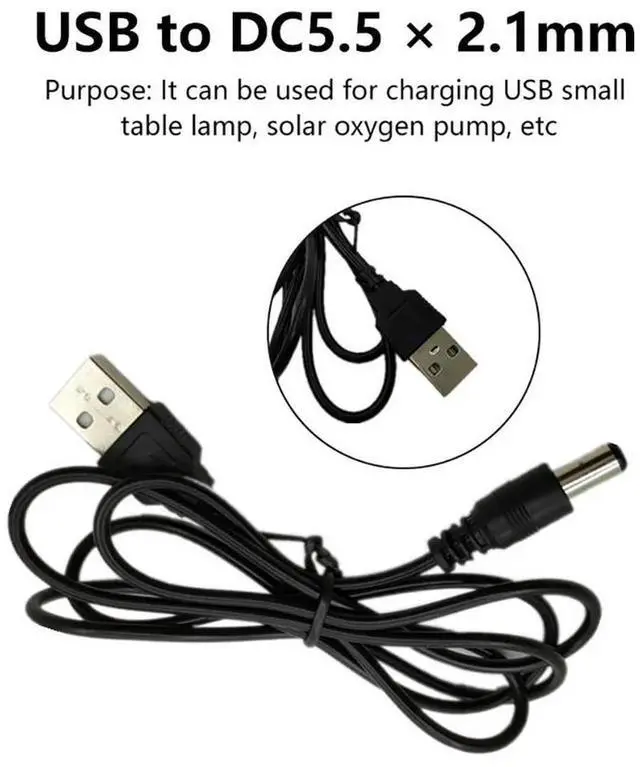• Power Cord Connector Professional USB To DC5.5x2.1mm Charge Power Cable Electronics for Solar Oxygen Pump Equipment