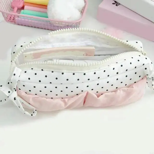 • Bowknot Pen Pouches High Capacity Fabric Pencil Case Pen Organiser Travel Cosmetic Bag for Student Women Girl