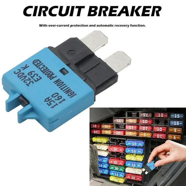 • 15A Reset Circuit Breaker Manual Reset Blade Fuse Adapter Resettable Circuit Breaker Blade Fuse 15A 32V DC for Marine Rally Auto