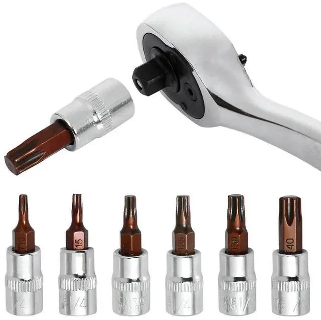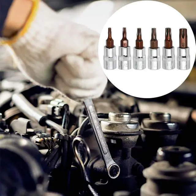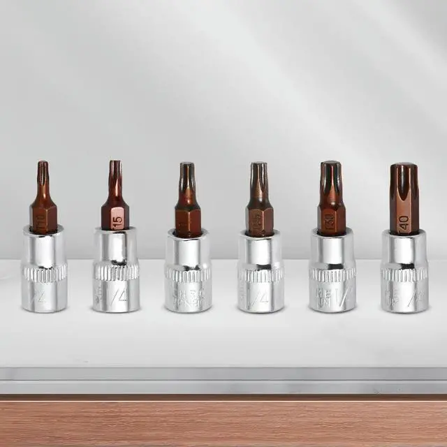 • 6 Pcs Torx Screwdriver Bit 1/4 Inch Drive Hex Bit Sockets Set Drive Socket Head Tool for Wrench Socket Modification