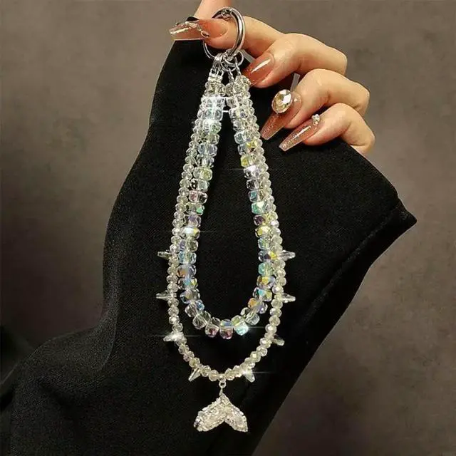 • Crystal Fish Tail Phone Lanyard Hanging Chain Anti Loss Wrist Strap For Mobile Devices Phone Accessory