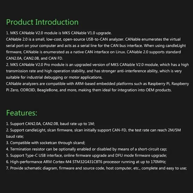 • CANable 2.0 CANbus USB to CAN Converter Adapter Module CANable USB to CAN Module Debugger USB CAN Converter Adapter