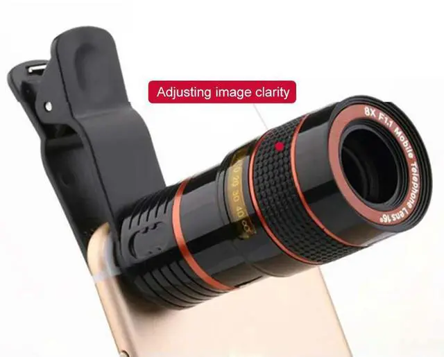• Clip-on 8x Lens Black Shell Effects Photography Lens Adjustable Focal Length High Magnification for Outdoor Camping Accessories
