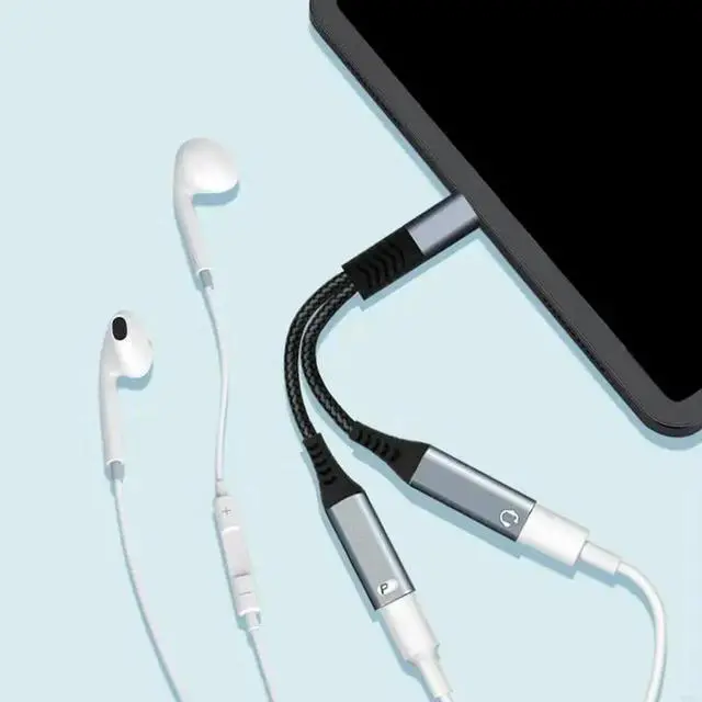 USB C OTG Adapter with 18W Power Delivery Two Port for phones and Data Transfer Braided Cable