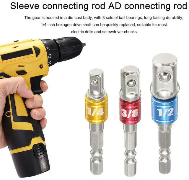 • 3pcs Impact Drill Bit Socket Adapter Power Extension Bar Hex Shank Square Driver