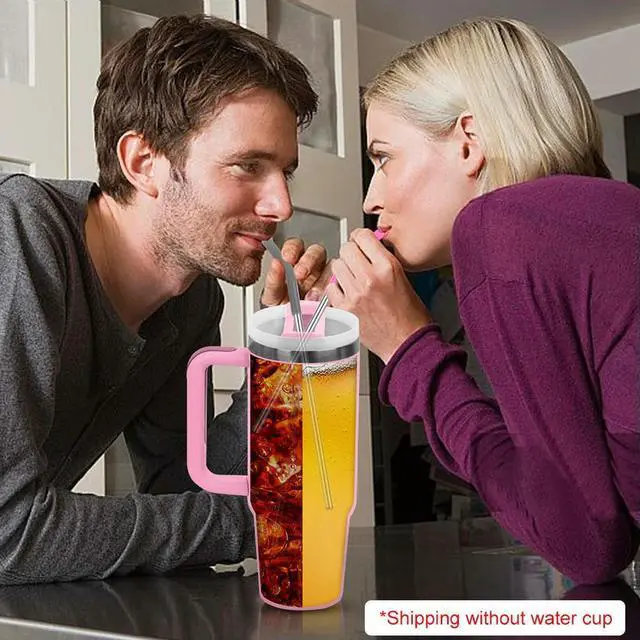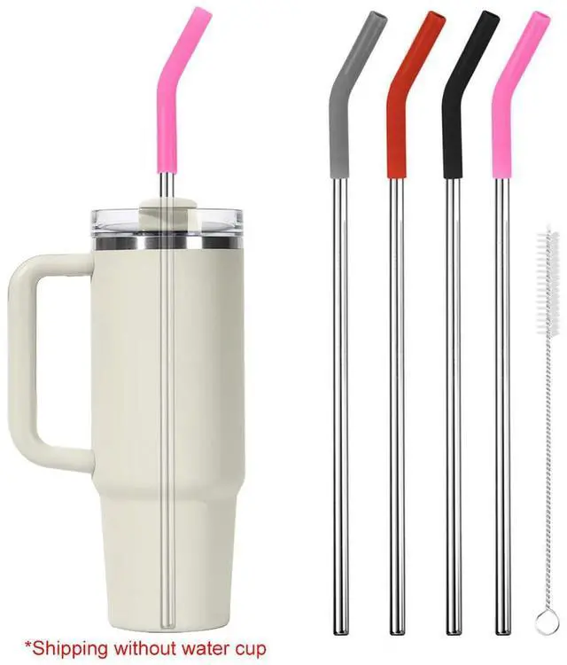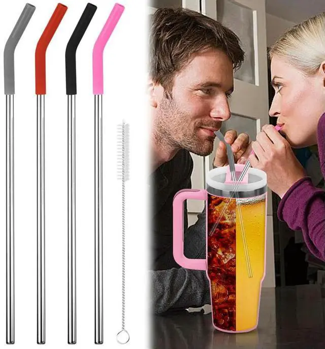 • 4Pcs Long l Straw with Silicone Tips Cleaning Brush Stainless Steel Straws Replacement with Cover for Stanley 40oz Tumbler