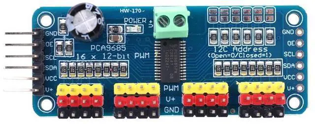 • PCA9685 PWM Servo Driver Board IIC Interface 16 Channel 12-Bit PWM Servo Motor Driver Board for Robot/ Raspberry Pi