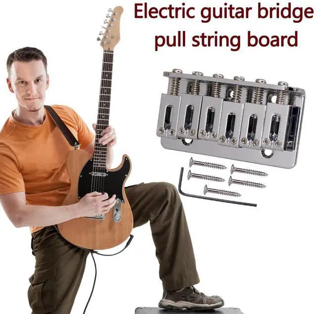 • Electric Guitar Saddle Bridge with Screws Wrench 6 String l Fixed Hardtail Saddle Bridge Top Load Guitar Tailpiece