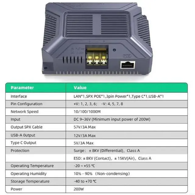 • 5 In 1 Poe Power Supply 12V 200W Adapter None Condensing Environment Compatible