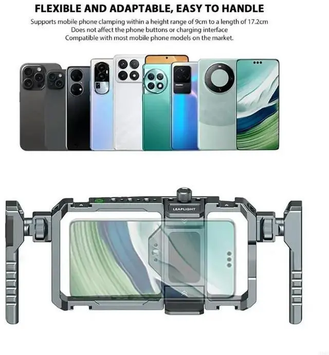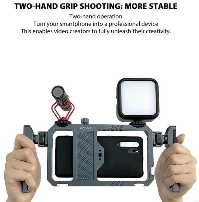 • Professional Video Rig for phones Adjustable Aluminum Frame Double Handle Operation Multiple 1/4 Threaded Port