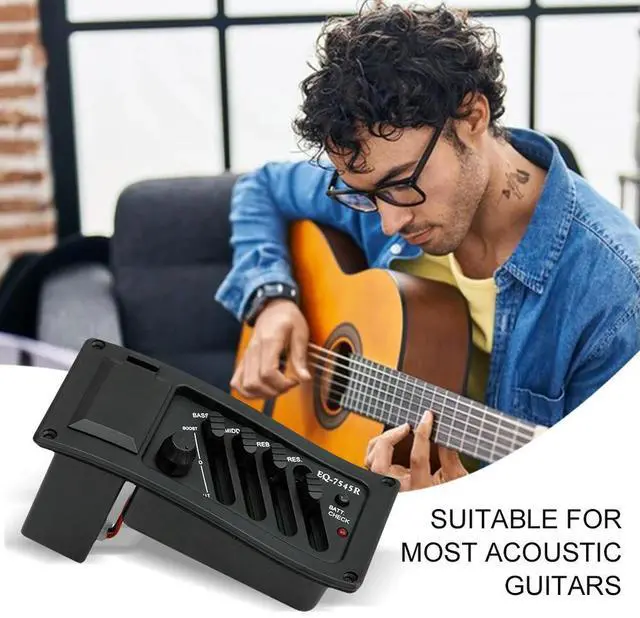 • 4 Band Guitar Pickup Acoutic Guitar EQ Piezo Pickup Acoustic Guitar Pickup Preamp EQ Tuner Amplifier Equalizer Tuner