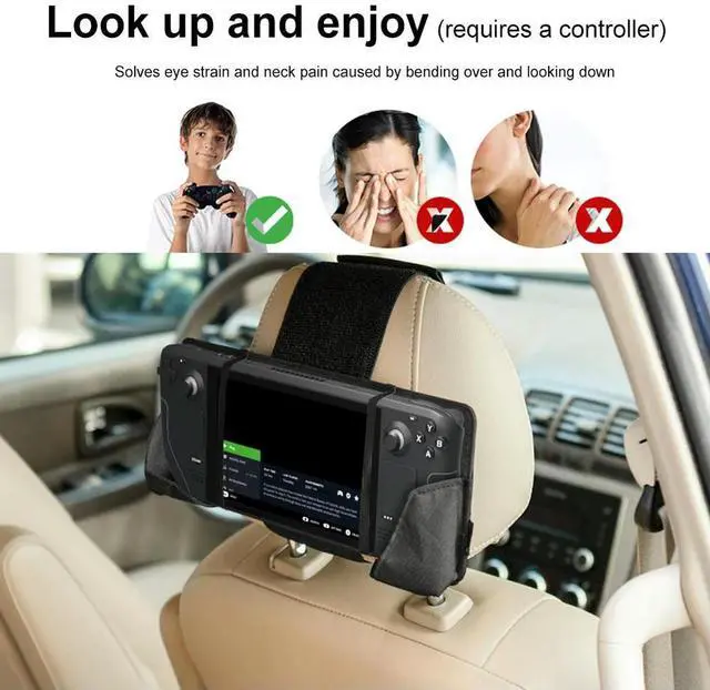 • For Steam Deck Car Headrest Mount with Fixing Strap Game Console Holder Lightweight Nylon Headrest Holder Gaming Accessories