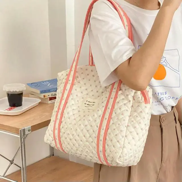 Cotton Diaper Bags Soft Women Mummy Bag Cartoon Printed Mom Gifts (Beige)