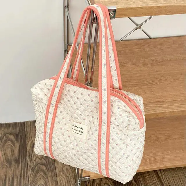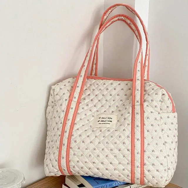 • Cotton Diaper Bags Soft Women Mummy Bag Cartoon Printed Mom Gifts (Beige)