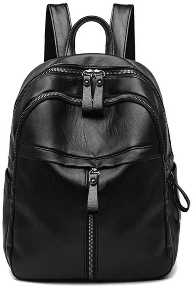 • Vintage PU Solid Color Student Backpack Women Travel Large Capacity Schoolbags