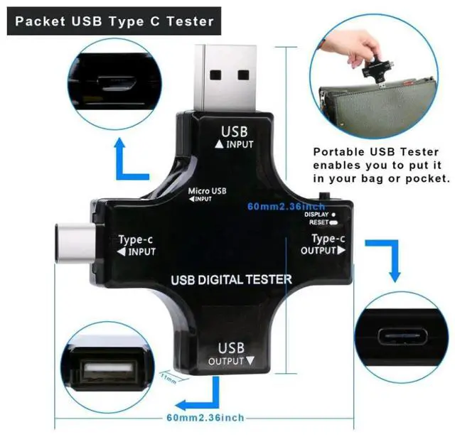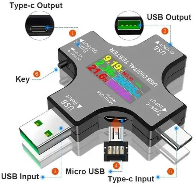 • Ampere Meter Type-C PD Voltage Current Meter Color Digital Display Ammeter Detector Charger Indicator Voltage USB Current Tester