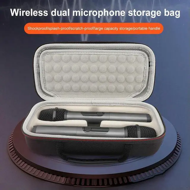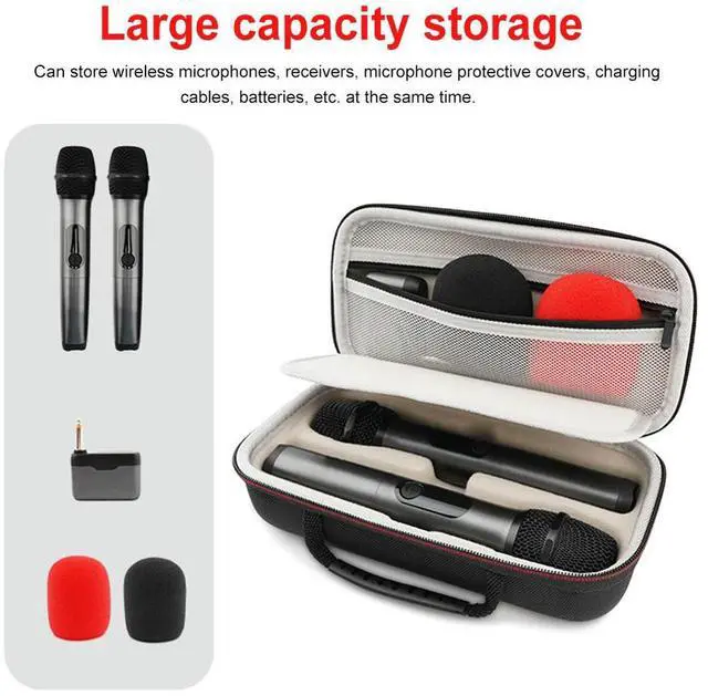 EVA Hard Dual Wireless Mic Bag W/ Zipper Handheld Dual Mic Carrying Case for Receivers Adapters AA Batteries Charger