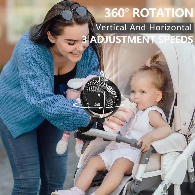 Flexible Stroller Fan 3 Speeds Rotatable Handheld Cooler (2)