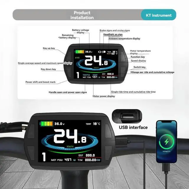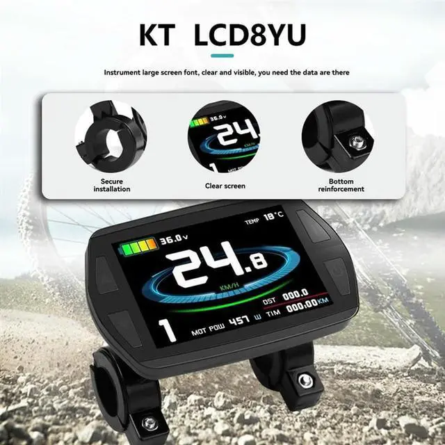 • Electric Bicycle 24V/36V/48V KT-LCD8YU Color Light Sensing Display Meter For Ebike Accessor Waterproof Plug