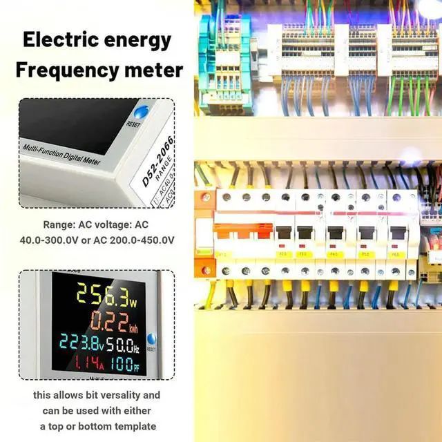 • Din Rail AC Monitor 6IN1 100A Voltage Current Power Factor Active KWH Electric Energy Frequency Meter VOLT AMP