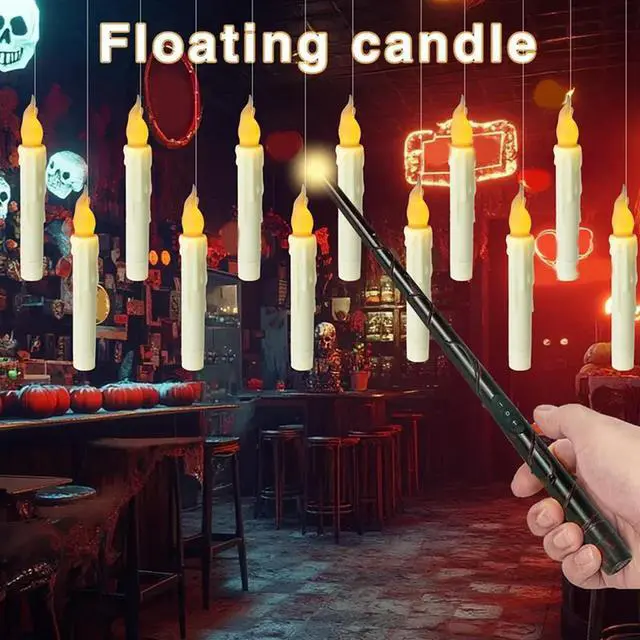 • Floating Candles LED Flameless 12PCS Taper For Halloween Decorations With Magic Wand Remote Control