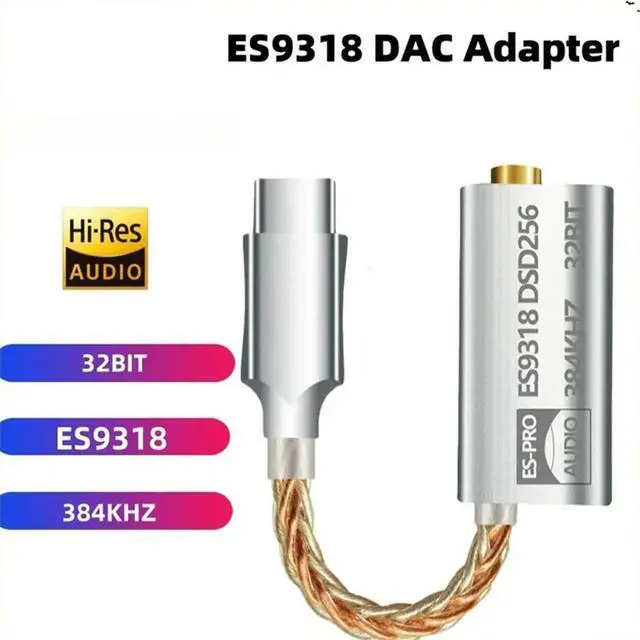 ES9318 Headphone Amplifier Cable DAC Amp Hifi USB To 3.5M m Adapter 32Bit/384Khz DSD256 180Mw Output CNC l Housing