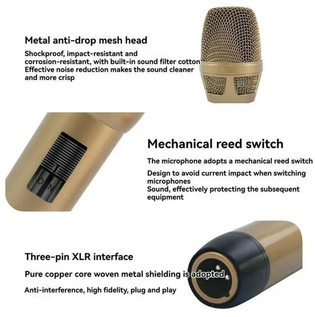 • Professional Dynamic Studio Microphone Wired Handheld Anti-Howling Stereo Design Mic