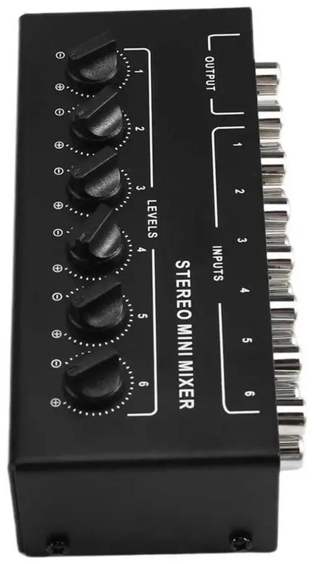 • Stereo 6 Channel Passive Mixer RCA Portable Audio Mixer 6 In 2 Out Stereo Distributor Volume Control No Required