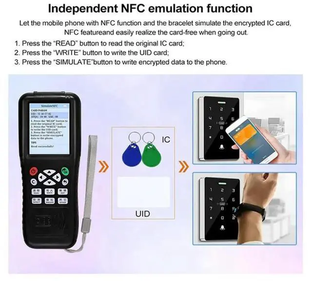 • X100 RFID NFC Card Reader Writer +5XCUID Keychain RFID Duplicator ID IC Card Programmer Encrypted Key Copier