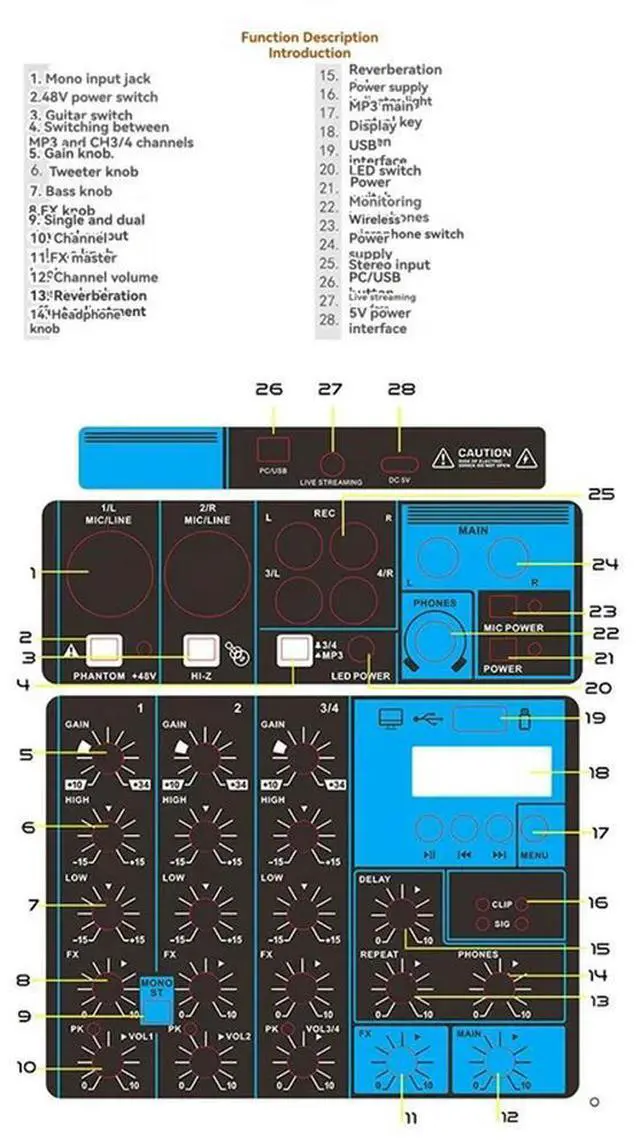 • Soundcard Mixing Console 4 Channel Sound Mixer Professional Audio For Live Streaming DJ For Audio Equipment