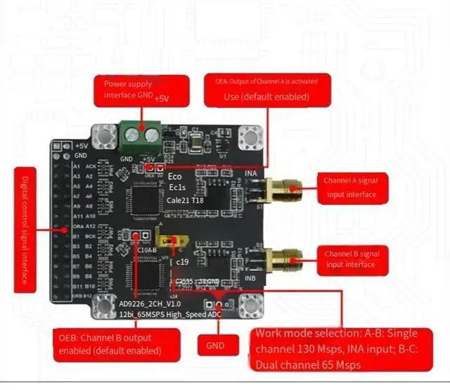 • AD9226 High-Speed 12-Bit ADC Data Acquisition Module Board Dual 65M/Single 130M Sampling Rate