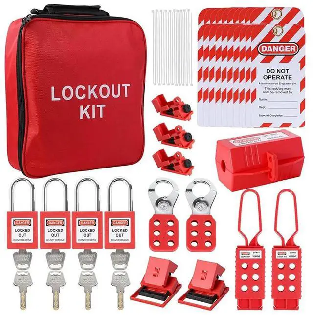 • Lockout Tagout Kit, Electrical Loto-Kit With Circuit Breaker Lockout, Lockout Hasps, Lock Out Tags Multi-Pole Breaker