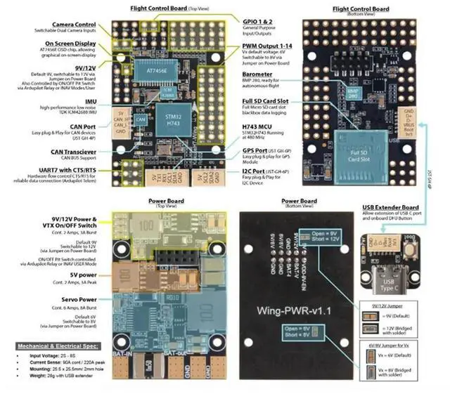 • H743-Wing Flight Controller 3-8S LIPO Supports INAV/ Ardupilot Firmware CAN Bus For Fixed Wing RC VTOL FPV Drone