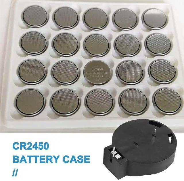 2 Pcs CR2450 Coin Cell Button Socket Holder Case 2 Pins Black