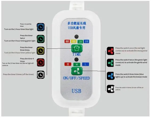 1.5M USB Remote Extension Cable With 2-12 Hour Timing For USB Fans And LED Lights