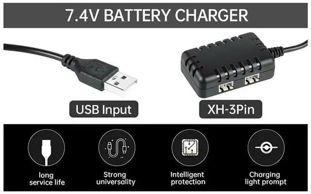 • 2X 2S 7.4V 2-In-1 Charger With XH-3P Connector Plug For AX24 SCX24 UTB18 SCX24 RC Cars& Trucks,7.4V 2S Lithium Batteries