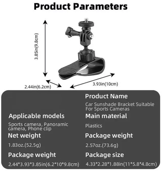 • 1 PCS Action Camera Car Sun Visor Mount Black Plastic For ACTION 4 X3 With 1/4 Inch Adapter