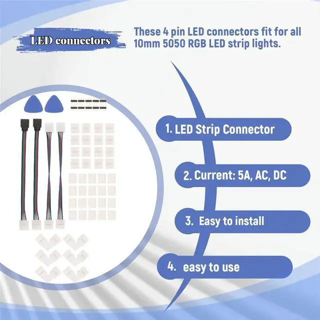 • LED Strip Connector 4 Pin 10Mm Solderless RGB Light Strip Connector For 5050 SMD - Gapless Connectors,L Shape Connectors