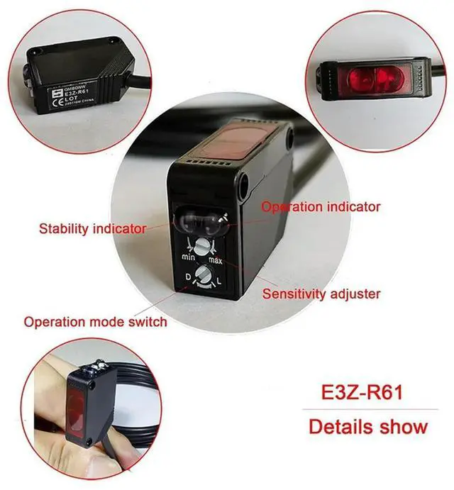 • E3Z-R61 NPN Photoelectric Switch Sensor Bracket Mirror Reflection 2 Meter Range Sensor