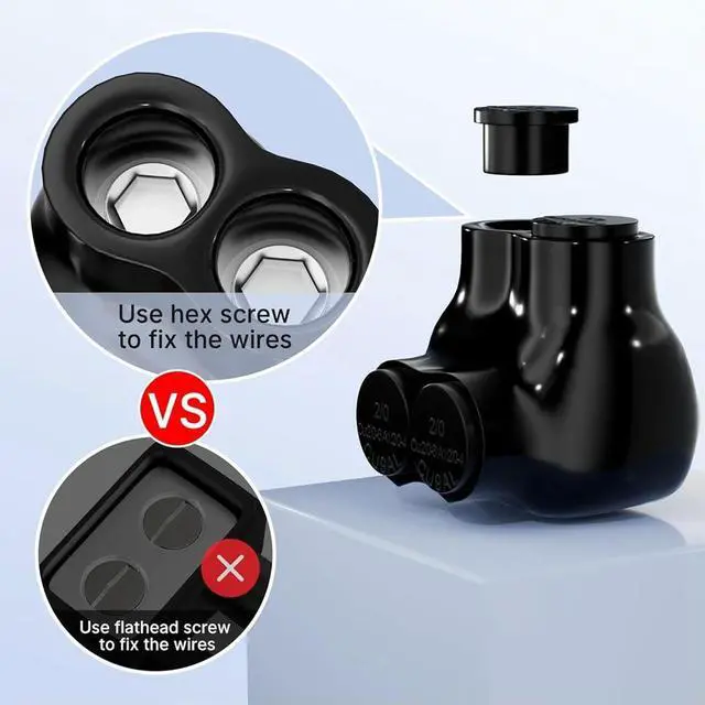 Insulated Connector 2/0-6 AWG 2 Port Multi Tap Single-Sided Entry Wire Connectors Slotted Allen Hex