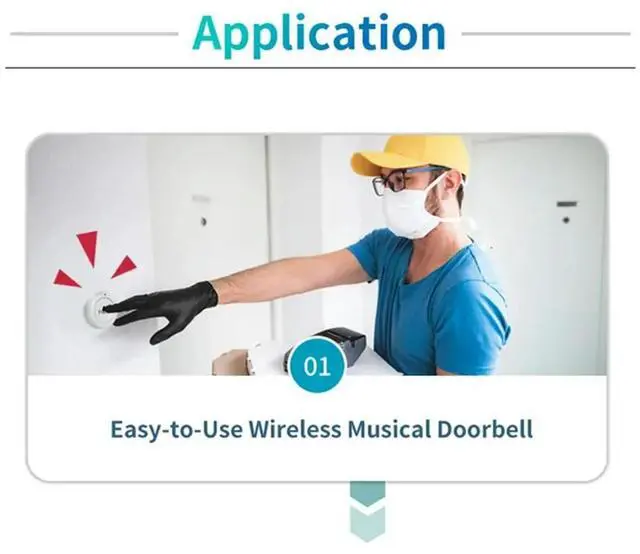 • Wireless Doorbell 433Mhz 150M 30 Music USB Door Bell Receiver Single Remote Control For Emergency Call Out Home School