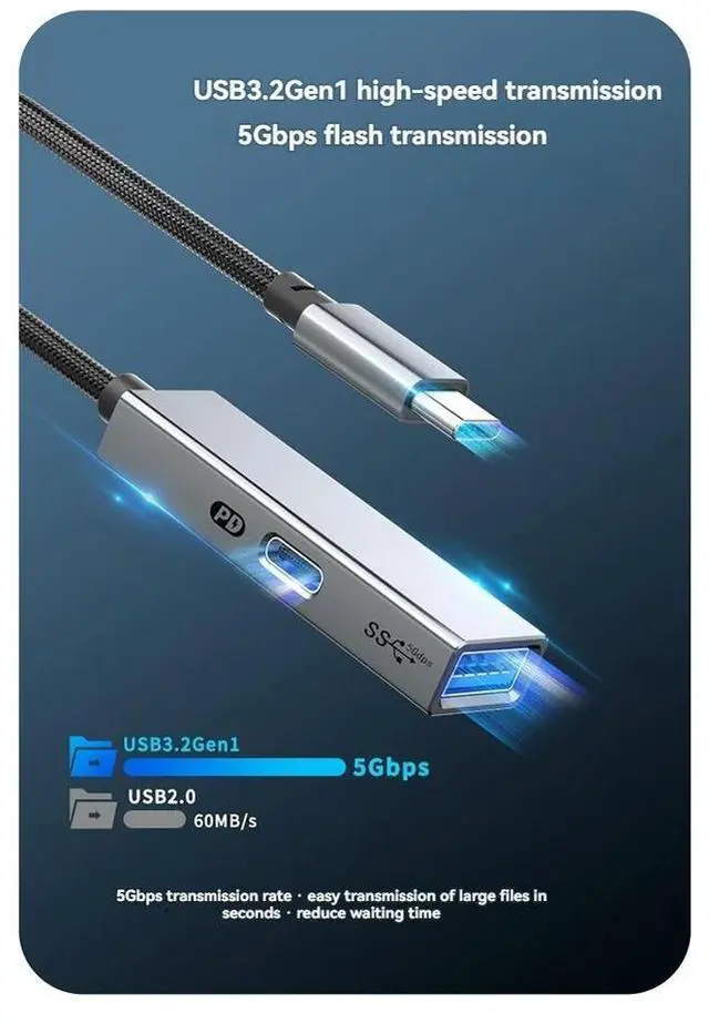 • USB 3.2 Type-C HUB 5Gbps 60W PD Charging OTG Adapter High-Speed USB To Type-C Converter B