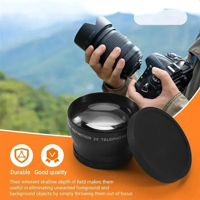 • 52Mm 2X Magnification Telephoto Lens For AF-S 18-55Mm 55-200Mm Lens Camera