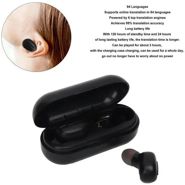 • Portable Translator Earbuds Bluetooth 5.0 84 Languages Real Time Translation Noise Reduction HiFi Sound for Business Travel Meet