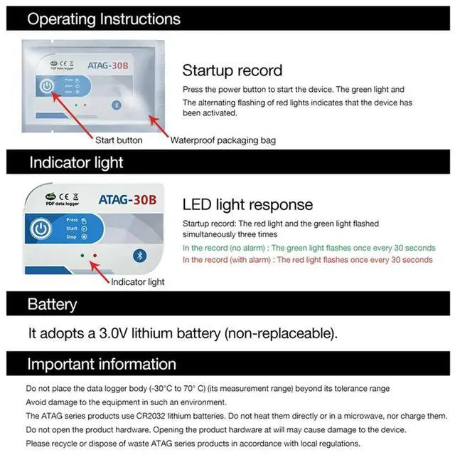 • Internal Sensor TEMP Recorder Mini USB Bluetooth 65000 Points Temperature Data Logger High Precision For Cold Chain