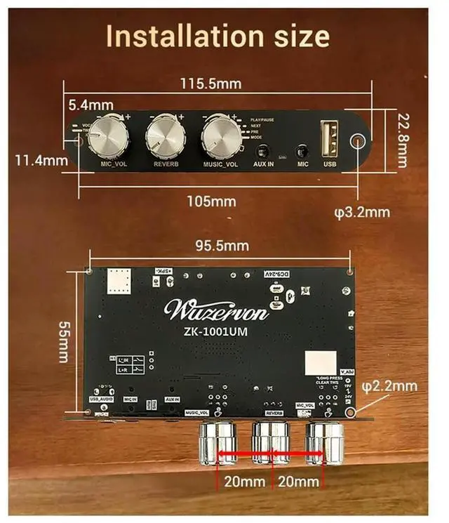 • Power Amplifier Board 1001UM Mono 100W Bluetooth 5.3 Subwoofer Module With Microphone Reverb