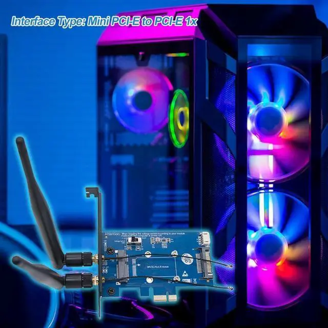 • Module Mini PCI-E Express To PCI-E 1X Adapter Card 3G/4G To PCI-E Development Board 2 Antennas