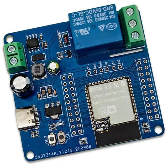 • ESP32-S3 Bluetooth Development Board Module Single-Channel Relay Module DC 5-60V Powered Type C Interface