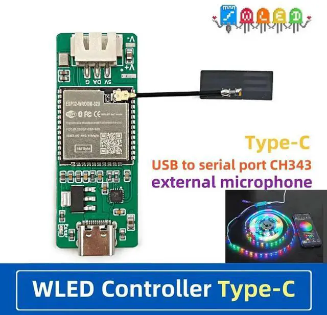 WLED Controller USB Typec CH343 Download WLED Firmware Supported Lamp Beads WS2812X (Series), Etc WLED Can Support Only